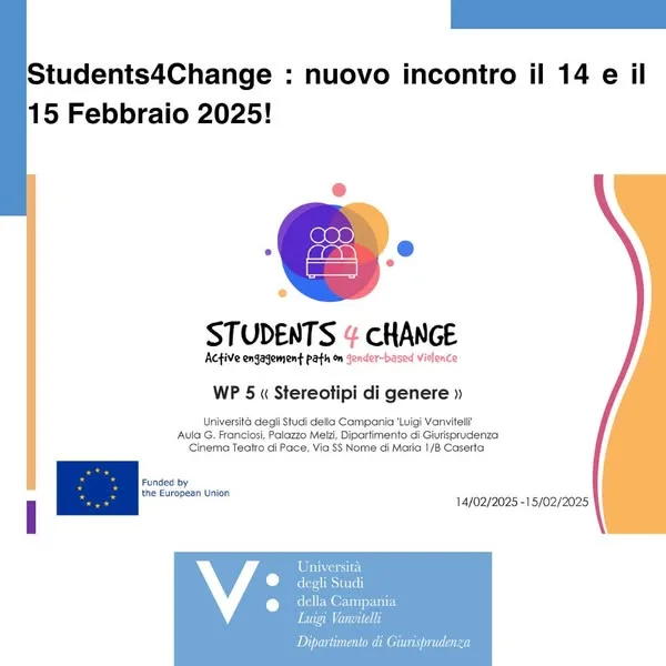 Il Dipartimento di Giurisprudenza ha accolto le studentesse e gli studenti che partecipano al progetto europeo Students4Change, coordinato dalla Prof.ssa Marianna Pignata, per l’incontro sul tema degli «Stereotipi di genere ».